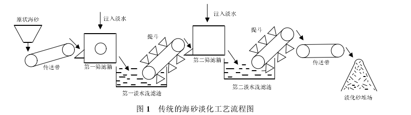 海砂淡化用淡水沖洗法是為常用的方法??墒沁@種方法需要反復多次用淡水進行沖洗,生產(chǎn)合乎建筑標準的淡化海砂對于淡水資源需求量很大,生產(chǎn)成本較大,在淡水資源缺乏的地區(qū),這種傳統(tǒng)的海沙淡化工藝就存在了很大的局限性。針對傳統(tǒng)海砂淡化方法和工藝存在的問題,日前有國內學者研究通過采用“對海沙中含有的氯鹽進行氧化去除”處理新方法對海砂進行淡化處理,直接采用高效的脫氯劑把氯離子除去,大大減少了淡水的消耗量,可很大程度上節(jié)約淡水資源。經(jīng)過試驗得知除氯效果要遠遠好于傳統(tǒng)海沙淡化方式--機械淘洗法。